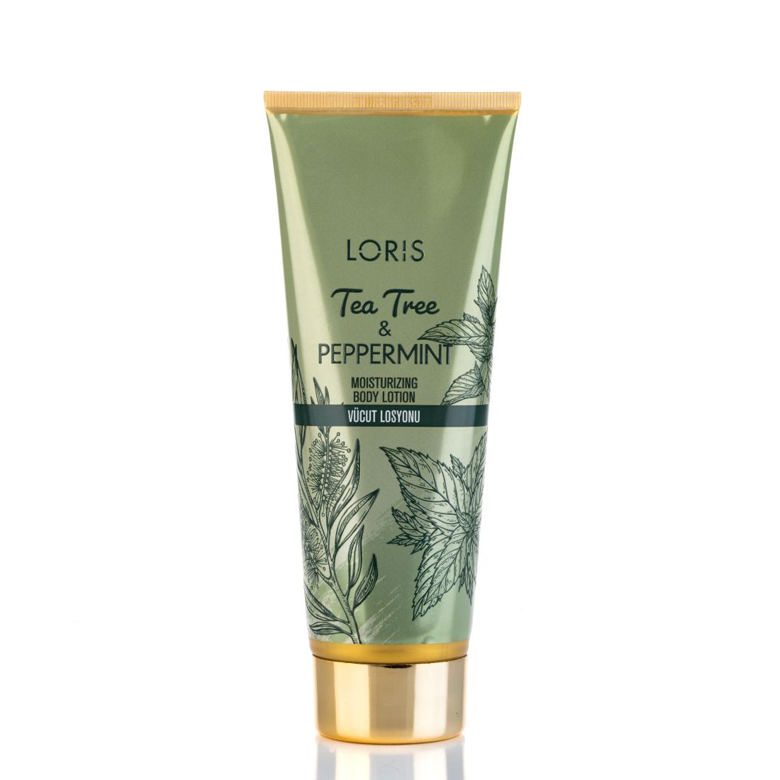 Loris Unisex Tea Tree Peppermint Body Lotion is a wonderful blend of green tea, peppermint, lemon, orange, mandarin, freesia, jasmine, mandarin blossom, musk, powder, and cedarwood. It moisturizes your skin with aromatherapeutic accents, ignites your vitality, and radiates happiness.